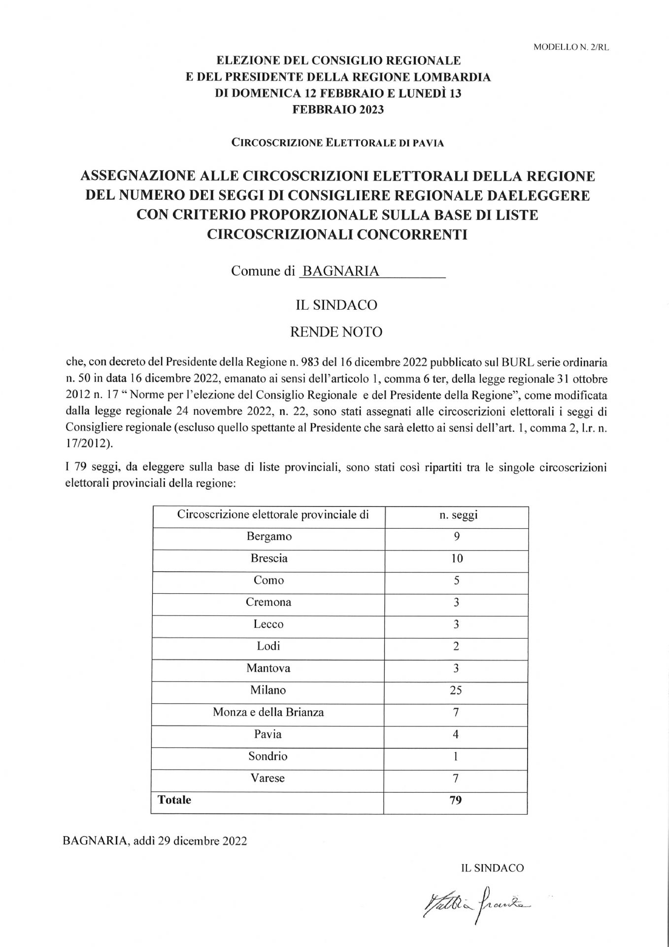 Elezione del consiglio regionale e del presidente della regione lombardia di domenica 12 febbraio e lunedì 13 febbraio 2023
