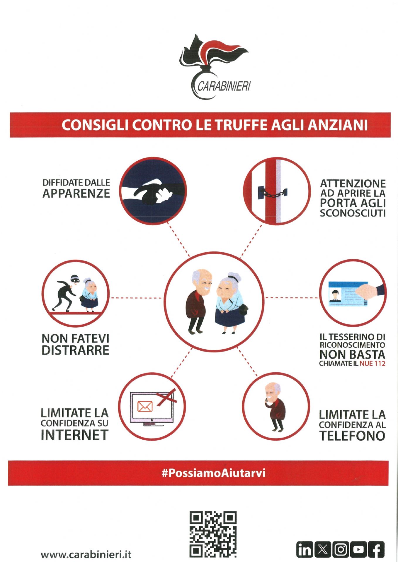 Si pubblica locandina contenente consigli pratici su come difendersi da truffe, specialmente quelle perpetrate a danno di anziani e persone fragili.