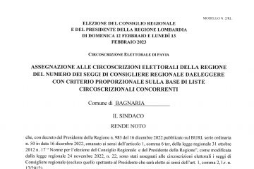 Leggi tuttoElezione del consiglio regionale e del presidente della regione lombardia di domenica 12 febbraio e lunedì 13 febbraio 2023