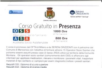Cfta di milano e sereni orizzonti, patrocinati dal comune di menconico, promuovono il corso di formazione gratuito per asa e oss con possibilità di assunzione al termine del corso.